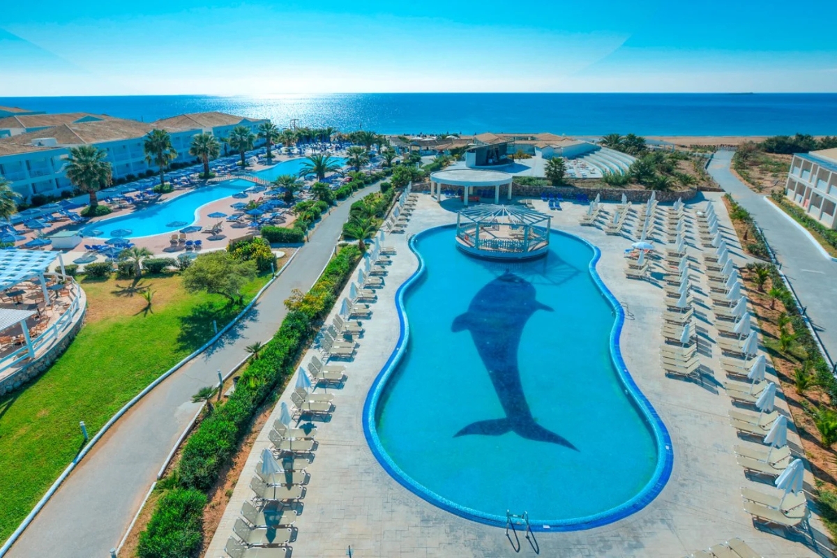 In prima linea sulle straordinarie spiagge sabbiose di Agios Georgios e di Issos, rinomate per la loro bellezza. Dispone di 4 piscine, di cui due molte ampie proprio alle spalle della spiaggia, una per bambini, una presso il Sandy Villas e di un acquapark con 4 scivoli. Uso di lettini e ombrelloni gratuito sia in piscina sia in spiaggia, teli mare a disposizione con deposito.