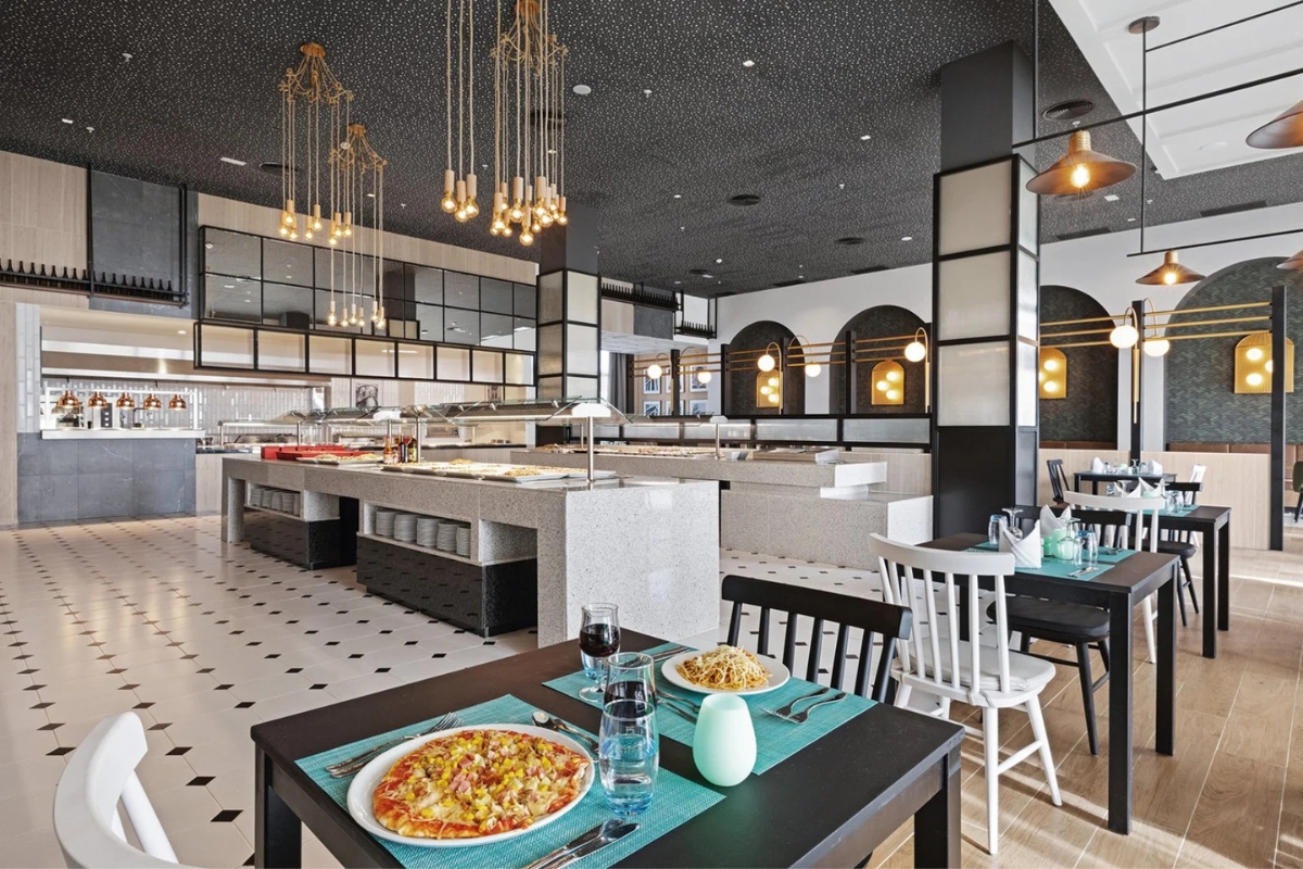 Ristorante principale Yassa a buffet, con terrazza all’aperto ed angolo show cooking, dove poter gustare piatti autentici. Inoltre, sono presenti diversi ristoranti tematici, l'asiatico Dorayaki, l'italiano Veneto e un ristorante à la carte grill, tutti con prenotazione obbligatoria e aperti per cena. Diversi bar, tra cui un lobby bar, un salone bar con terrazza e un pool bar, riservato ai maggiorenni. Le cene di Natale e Capodanno sono incluse.